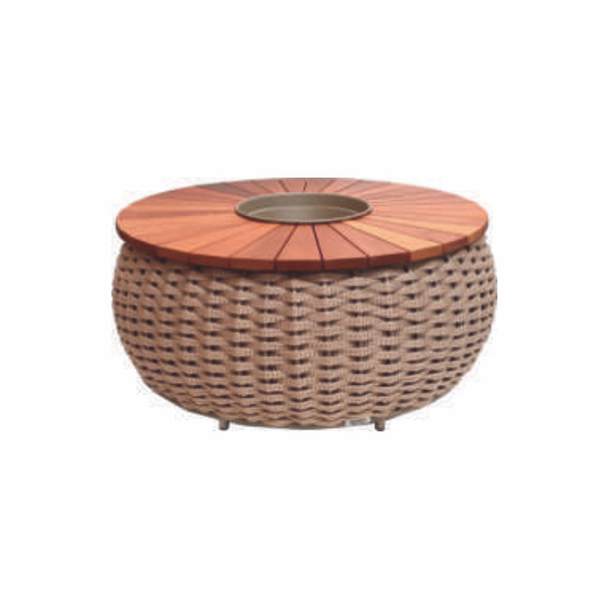 Design sofisticado e versatilidade para ambientes externos. Nossa champanheira é produzida em estrutura de alumínio de alta resistência, com pintura eletrostática que garante proteção contra oxidação e excelente durabilidade mesmo em áreas sujeitas a sol, chuva e maresia. O tampo pode ser escolhido em madeira natural — que traz calor e elegância ao ambiente — ou em alumínio, para um visual contemporâneo, clean e de baixa manutenção. O detalhe especial fica por conta do acabamento em corda náutica, que valoriza o design, trazendo sofisticação e modernidade. A corda é desenvolvida em fibras sintéticas de alta performance, resistente à umidade, raios UV e variações climáticas, sem perder conforto e beleza.