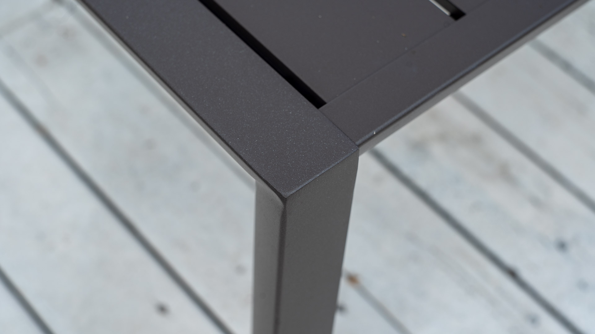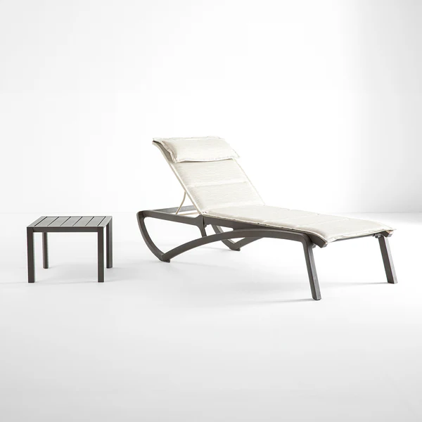 Feito em alumínio laqueado para maior durabilidade, este tampo de mesa complementa perfeitamente as estruturas da espreguiçadeira Sunset, cadeira, banqueta de bar e assentos profundos Conversational. Com um design de ripas abertas, é fácil de montar, garantindo qualidade e estilo.