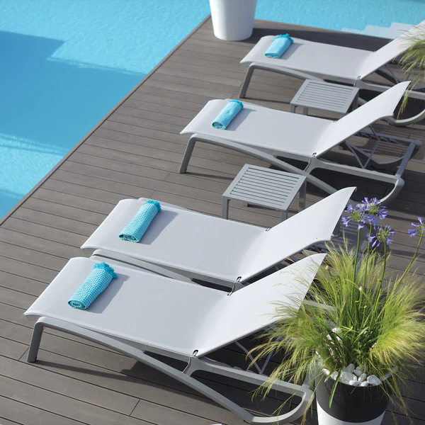 Feito em alumínio laqueado para maior durabilidade, este tampo de mesa complementa perfeitamente as estruturas da espreguiçadeira Sunset, cadeira, banqueta de bar e assentos profundos Conversational. Com um design de ripas abertas, é fácil de montar, garantindo qualidade e estilo.
