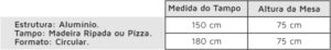Composição: Estrutura em alumínio / Tampo Madeira ou Alumínio