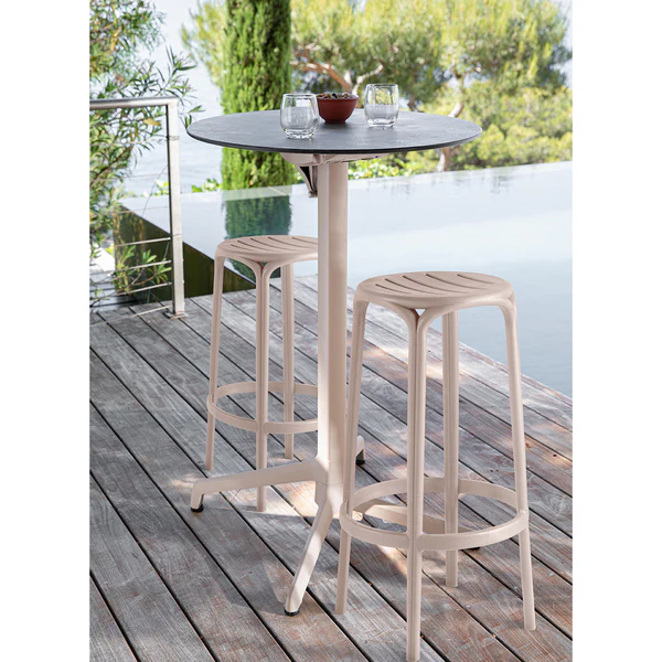 Equipada com uma alça Grosfillex comprovada que permite que o tampo instalado nela seja inclinado e um formato de perna projetado para se encaixar perfeitamente em mesas externas, o pé Alto X2.0 também oferece um design moderno e discreto.